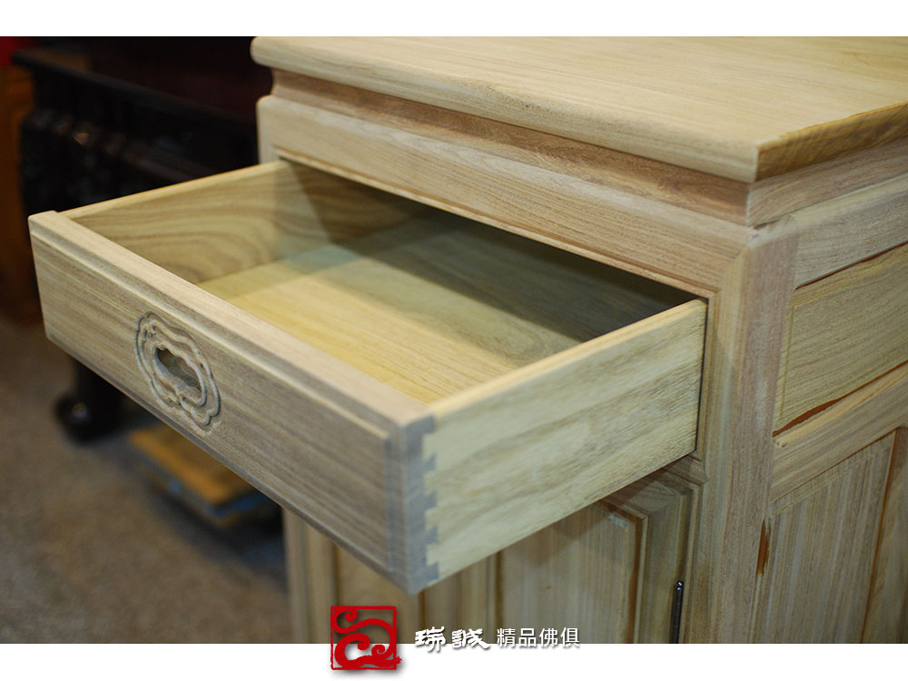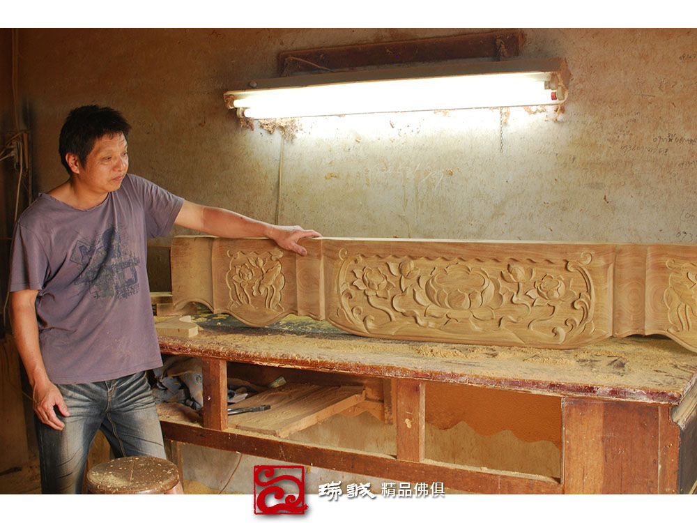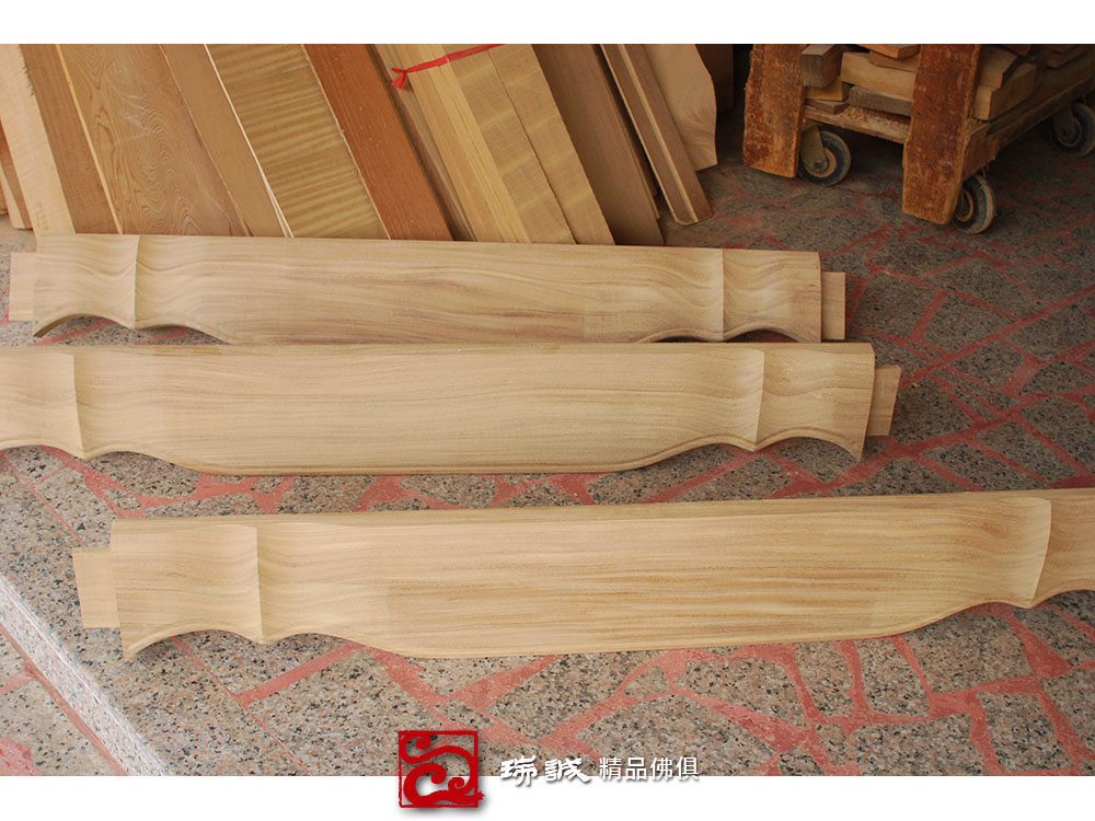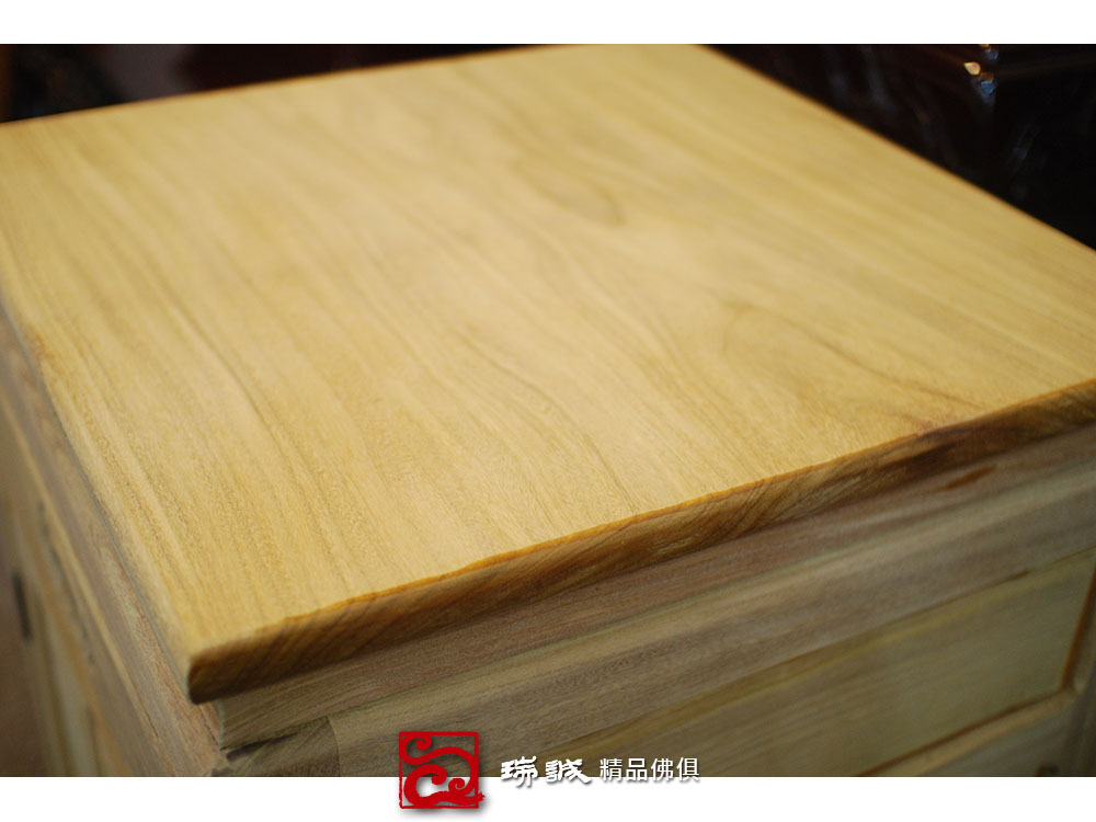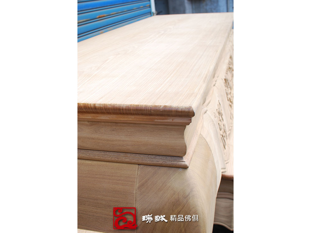 高雄市鳥松區林先生訂做佛堂用佛桌1組及邊櫃2只。全組採用頂級非洲柚木在台灣製作,白身完成後,漆面要用純手工生漆施做。由於客人對於未來整個佛堂的神聖莊嚴性寄予厚望,阿玄從選材、製作過程到最後完工,每一步驟皆謹謹慎監工,不敢馬虎。目前進度僅到白身完工,接下來會繼續生漆的製程,屆時阿玄再將作品完整呈現。