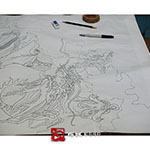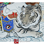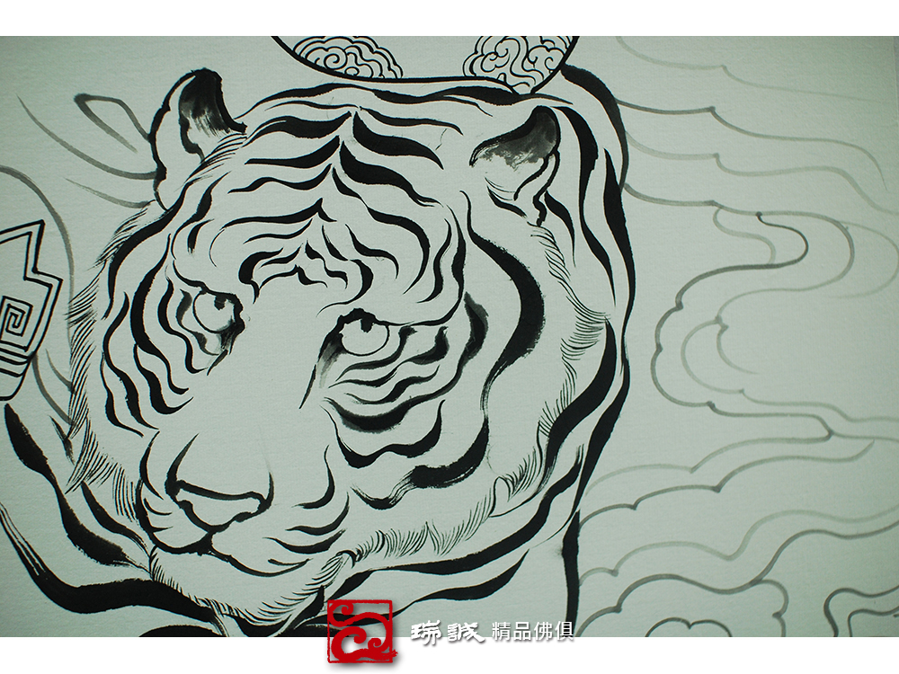 承蒙鳳山陳師兄訂畫,純為個人收藏欣賞。剛接此案時,心中壓力不小,既要達到工筆藝術的境界,又需符合客戶個人的期待,所以秉持有壓力才會有進步與突破的理念,勠力為之。此圖臉部表情陳師兄有提供一張相片當作參考,其他的佈局構圖,尤其如何表現黑虎的姿態與不怒而威的神韻,真是煞費苦心。完成後陳師兄看了非常的滿意與讚嘆!