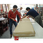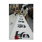 南投縣竹山鎮林先生訂做,美國加州愛爾蒙地市公共大佛堂用。寬9尺9寸*高13尺5寸(台尺)共五片,使用特級手工宣紙12尺長整張無接縫,全組阿玄手寫,訂做相框使用南洋烏心石,框條每支正面寬2.8寸*2寸,框條白身做好後送乾燥處理再上漆。因為要裝貨櫃送國外,為了全組字聯的安全起見,全部安裝5m強化玻璃,前後耗時三個月 。