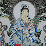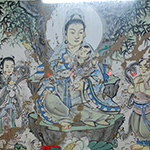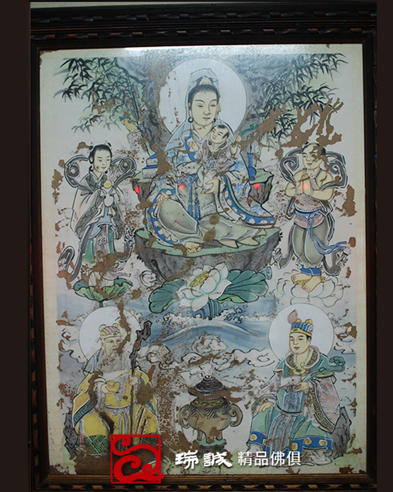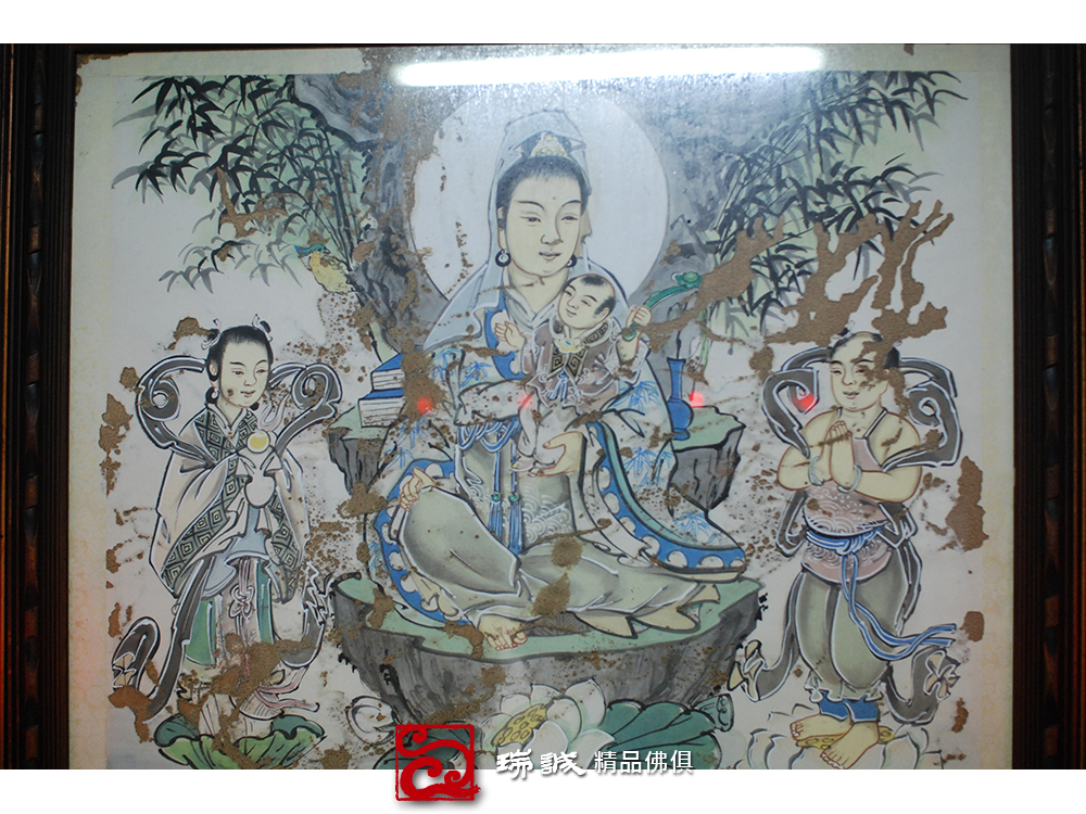 仿舊圖觀音匾,舊圖嚴重蛀蟲毀損,依照原貎重繪,此圖講究筆墨濃淡力道,人物造型古樸耐看。
