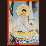 聽潮觀音,側坐素衣,坐黃蓮花。