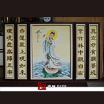立姿側面海潮觀音+淺米黃底木雕純金箔聯共五片。