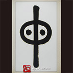 "母"字匾,白底黑字篆書,阿玄手寫。