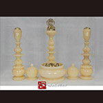 大蜜黃玉全組, 母燈高2尺,日、月燈高2.2尺,八卦爐口徑9寸。