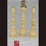 大蜜黃玉三支燈,母燈高2尺,日、月燈高2.2尺。