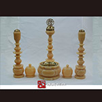 大黃玉全組,母燈高2尺,日、月燈2.2尺,八卦爐口徑9寸。