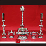 1號銅電鍍白色全組,母燈高2尺,日、月燈高2.2尺,八卦爐口徑9寸。