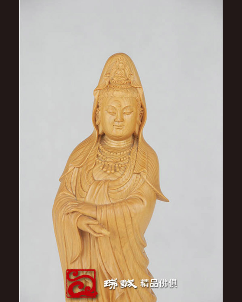 尺3正面立姿觀音,台灣檜木。原木的美感,觀賞、供奉皆可。