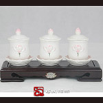 粉蓮供杯配黑紫檀鋸花單片供水桌。