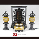 雙黃系列1尺黑檀九品蓮公媽龕,8.8寸雙黃祖先燈,3.5寸雙黃公媽爐。